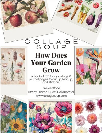 How Does Your Garden Grow is a collaboration with Emilee Stone, from Collage Soup. I had a vision of creating a book with horizontal layout that would be easy to convert into journal pages, and Emilee helped to make that vision a reality. I'm excited to share this garden themed book that's full of gorgeous flowers, leaves, butterflies, and veggies!